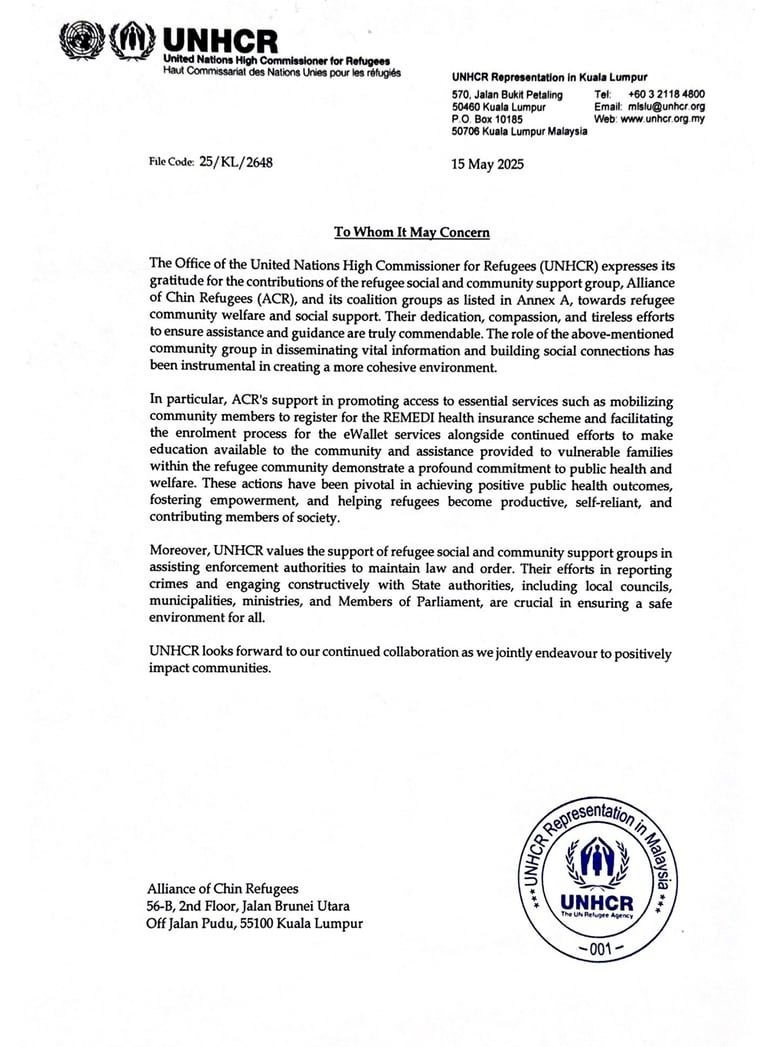 As part of ACR’s continued commitment to inclusive education and humanitarian service, we are pleased to work in close partnership with United Nations High Commissioner for Refugees (UNHCR) to support refugees through coordinated programs and community-based initiatives.